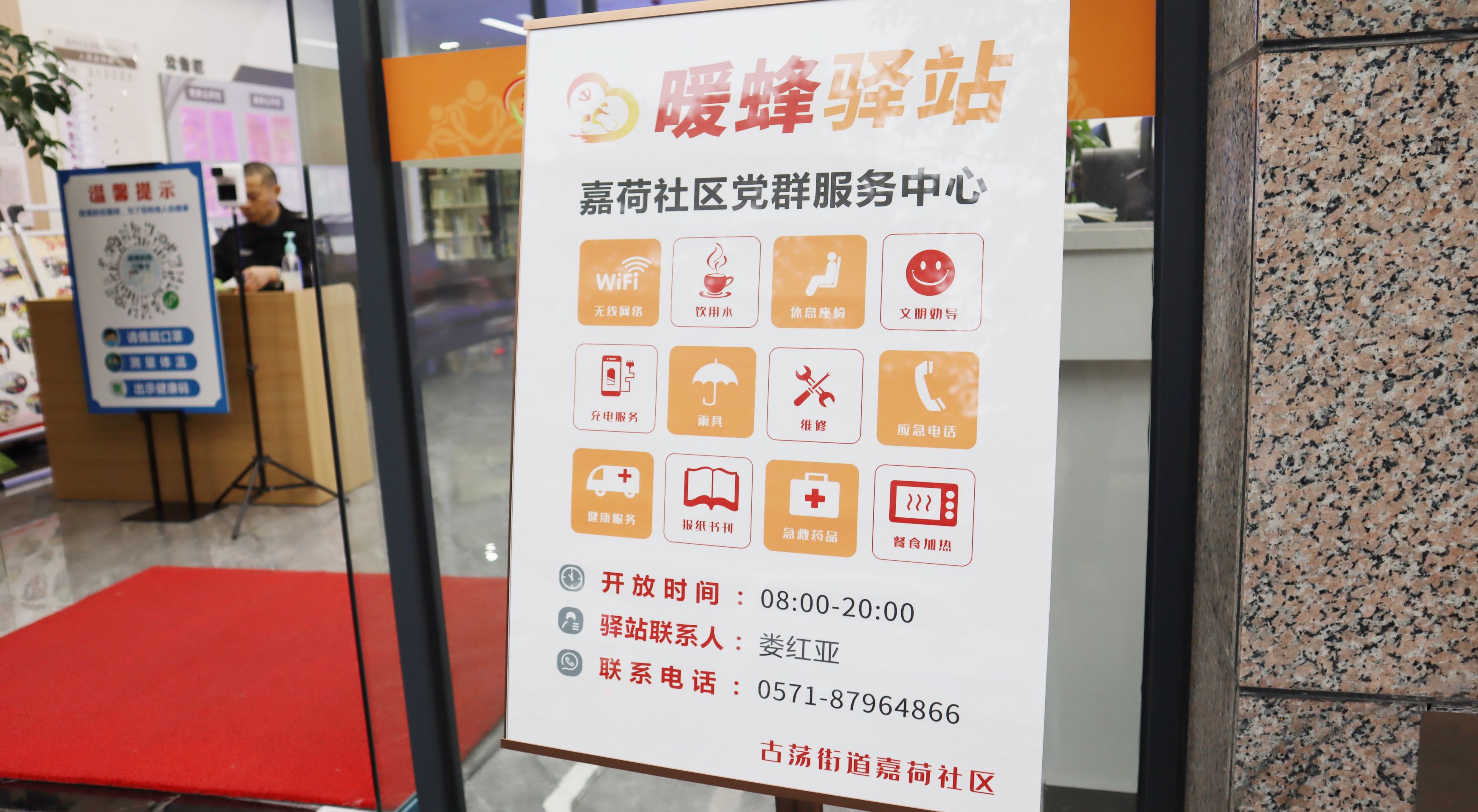驛站還配備了雨傘、充電寶、打氣筒、急救箱、防暑降溫藥品、暖寶寶等應(yīng)急物品,給風(fēng)雨中工作的快遞小哥、外賣騎手等外來(lái)務(wù)工人員多添了一份安心。惡劣天氣下辛苦工作的“小哥”,可以到驛站中喝一杯水,累了歇歇腳,熱了降降溫,冷了取取暖。
