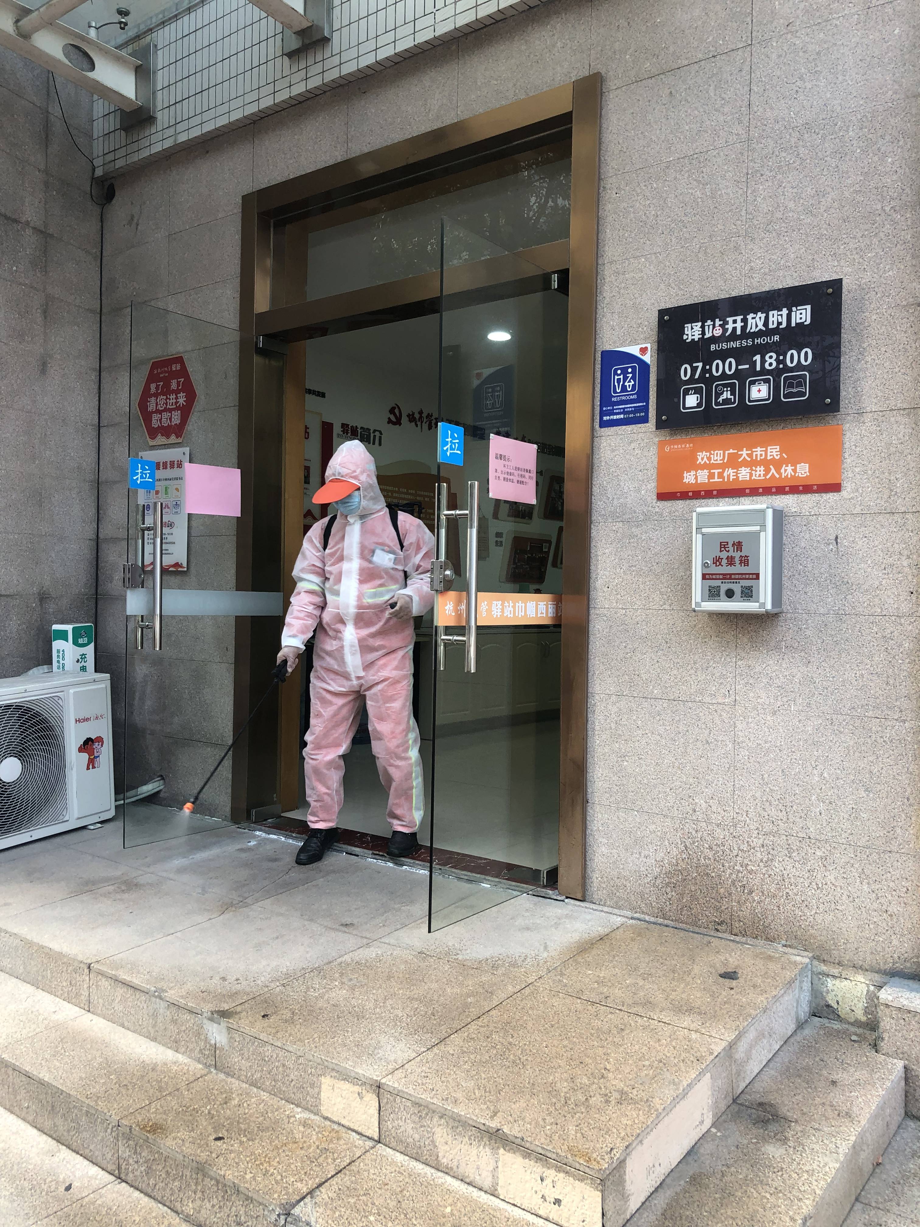 疫情嚴(yán)防嚴(yán)控期間,施月平主動(dòng)請(qǐng)纓:“我是黨員,我年輕,難活兒累活兒讓我先來!”每天早早地來到單位,在橙色環(huán)衛(wèi)服外再穿上防護(hù)服,戴上口罩、帽子,背起噴霧桶,開始對(duì)果皮箱、垃圾桶、窨井、公交站、地鐵口等區(qū)域進(jìn)行全面的消殺工作。城管驛站消殺任務(wù)、各種作業(yè)車輛消殺任務(wù)、作業(yè)工具消殺任務(wù)、辦公室消殺任務(wù),施月平一樣不落,親歷親為。