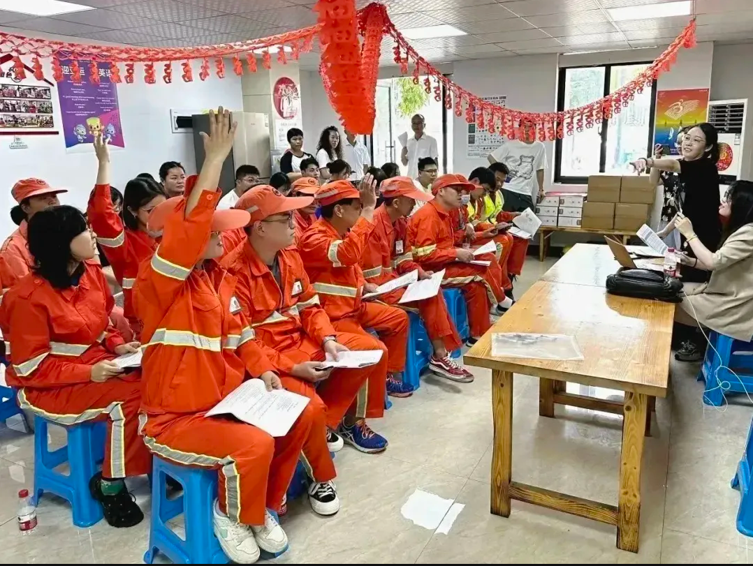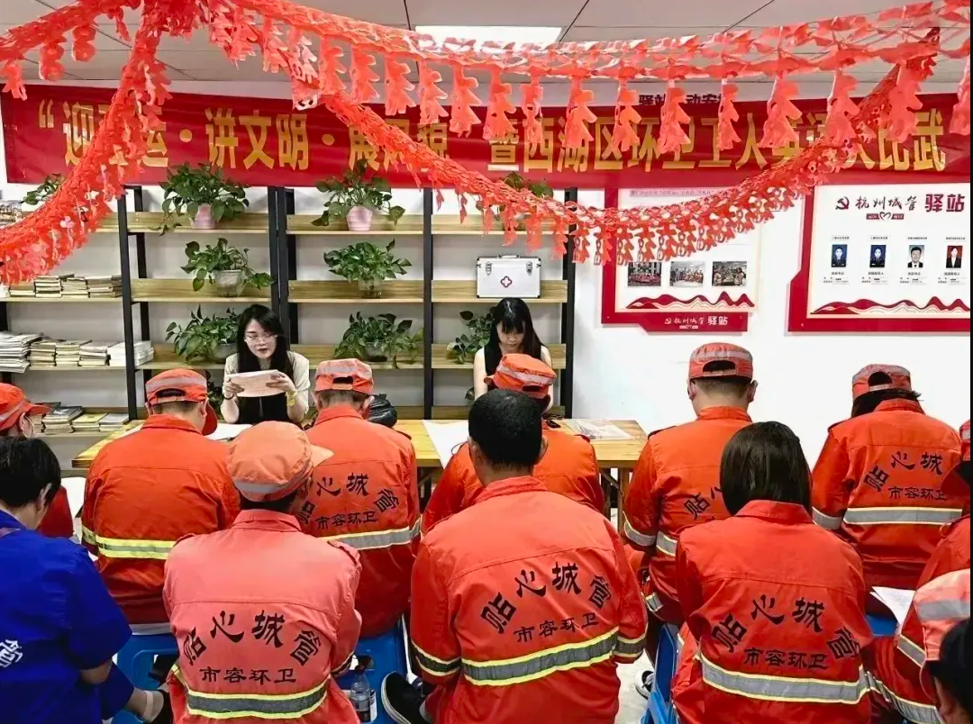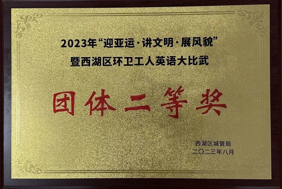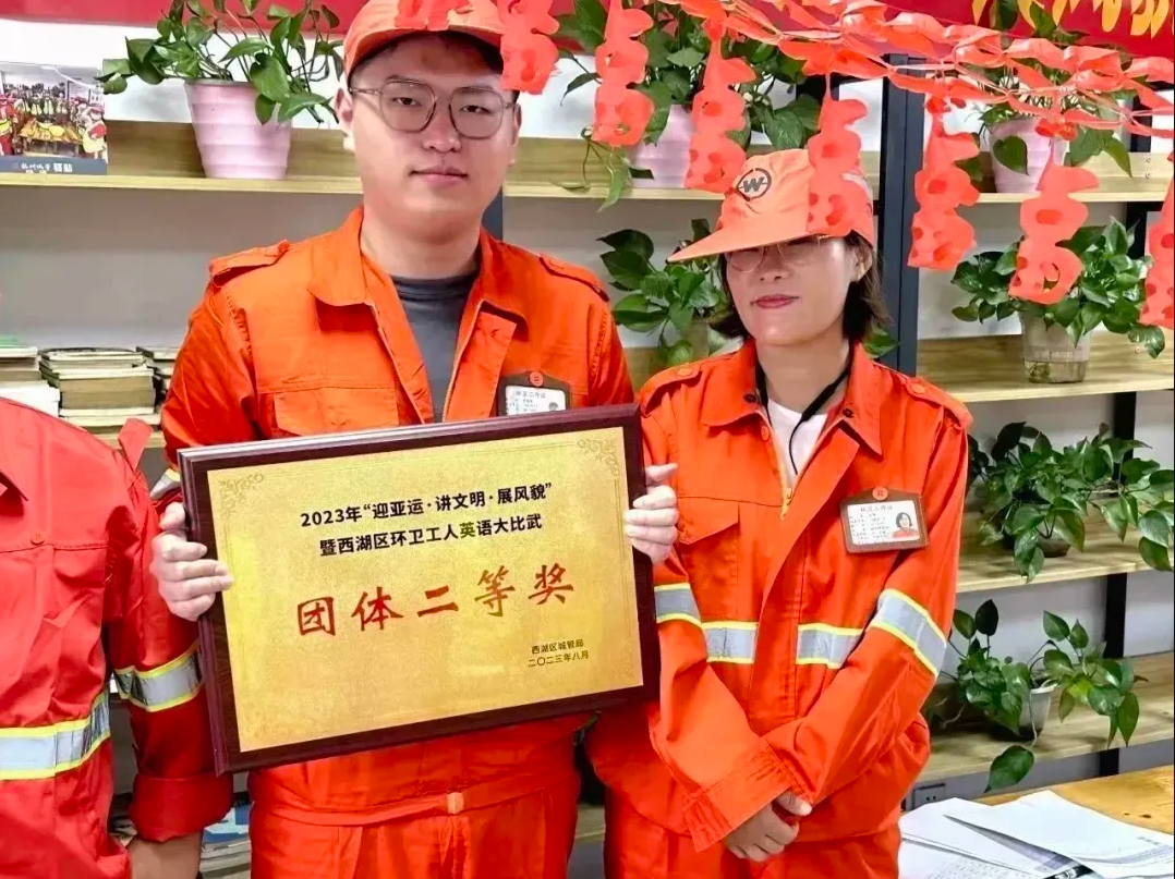 8月24日上午,由杭州市環(huán)衛(wèi)固廢中心指導(dǎo),西湖區(qū)城管局主辦的“迎亞運(yùn)·講文明·展風(fēng)貌暨西湖區(qū)環(huán)衛(wèi)工人英語大比武”活動在杭州城管驛站慧仁家園南區(qū)黨群服務(wù)站舉辦,巾幗西麗集團(tuán)派出2名環(huán)衛(wèi)代表參賽,進(jìn)行精彩比拼,為集團(tuán)贏得了“團(tuán)體二等獎(jiǎng)”。