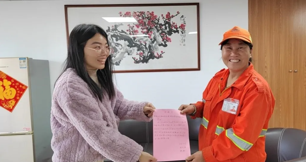 事后,失主阮女士當(dāng)面感謝了這位拾金不昧的環(huán)衛(wèi)工人,并通過一封感謝信對他們細(xì)心的工作和熱情待人的態(tài)度表達感激。